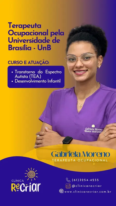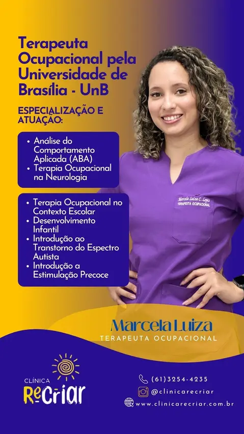 A Clínica Recriar Unidade Águas Claras oferece atendimento especializado em terapia ocupacional em Águas Claras, para todas as idades, desde crianças até idosos. Nossa equipe de terapeutas ocupacionais trabalha com foco na promoção da autonomia e qualidade de vida, ajudando pacientes a desenvolverem habilidades funcionais essenciais para o dia a dia. Seja para reabilitação física, desenvolvimento motor, integração sensorial ou apoio à saúde mental, nossa abordagem é personalizada, visando sempre o bem-estar e a independência dos nossos pacientes. A Clínica Recriar Águas Claras é referência em terapia ocupacional em Brasília, oferecendo um cuidado integral e especializado.